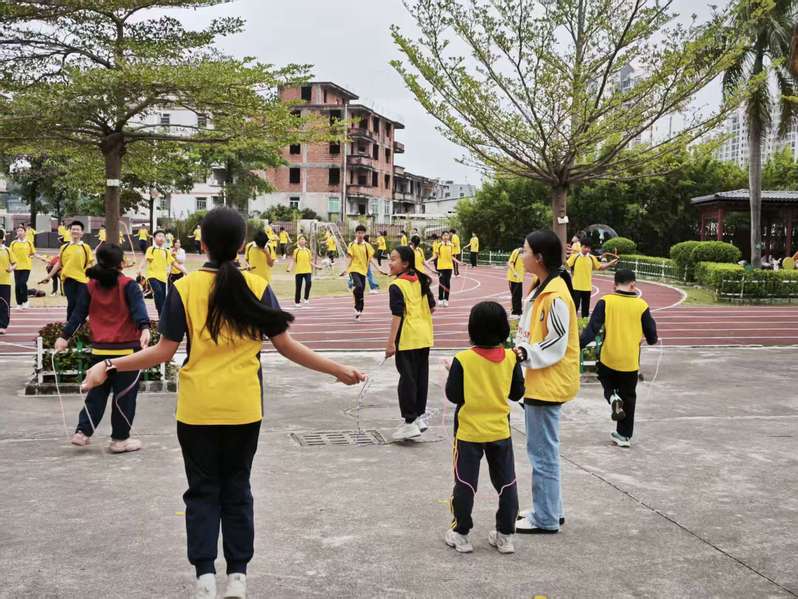 25数学6班许晓暖:在跳绳志愿活动中,我最初看到的是笨拙的绊倒和焦急的小脸。我蹲下来,把动作拆解成慢放的画面:“看,绳子落地时你再起跳。”当第一个孩子终于连贯地跳起来时,她举着绳子欢呼起来,像举起一面胜利的旗帜。那一刻我明白,我们传递的并非技巧,而是一份“你可以”的信念。绳子划过的弧线,连接起勇气与成就,那弧光也照亮了我的路,只要给予耐心,便能收获世界上最动人的飞跃。