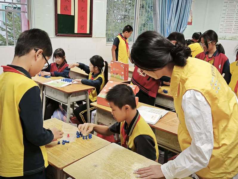 在思维训练课堂中,志愿者协助课程老师设计了“数字炸弹”“汉字大富翁”“逻辑推理小关卡”等一系列活动,帮助孩子们锻炼数感和策略思维,培养他们耐心思考、有序推理的良好习惯。