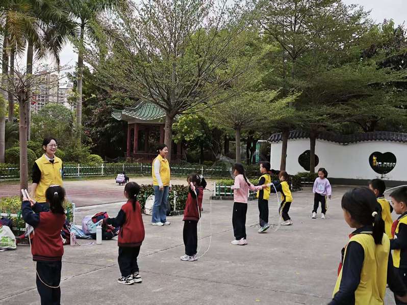 在篮球、跳绳基础技能教学的课堂中,志愿者们协助课程老师引导孩子们学习原地运球、行进间传球、三步上篮和正确跳绳等基本动作。不仅提高了孩子们的运动技术,也让不少原本内向的学生在轻松积极的氛围中逐渐展现出开朗、自信的一面。