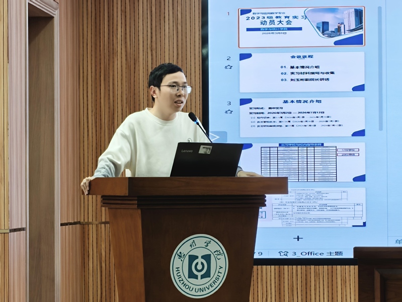3月6日下午,我院在旭日科技大楼A201举行2023级实习动员大会。学院副院长刘玉彬、数学系副主任张文超、实习指导教师代表、辅导员林培琪以及2023级全体数学与应用数学专业学生参加了本次会议。会议由张文超博士主持。