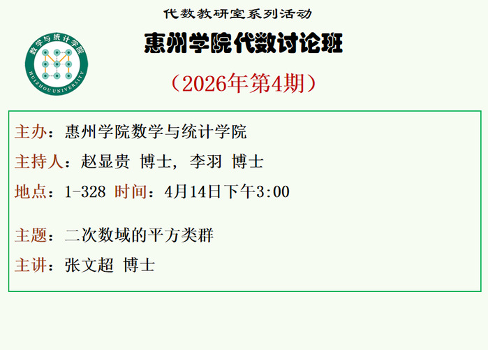 惠州学院代数讨论班(2026年第4期)